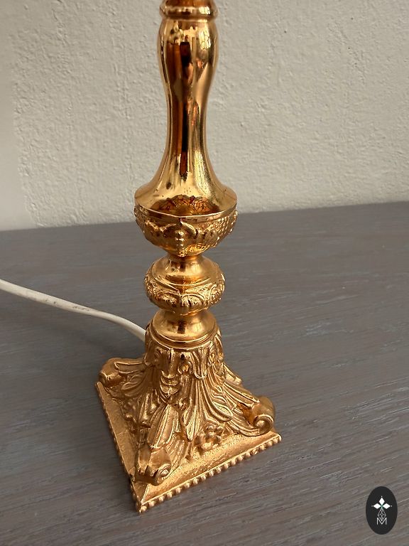 Kuldse värvi metalljalg, koht ühele tavalisele E27 pirnile.