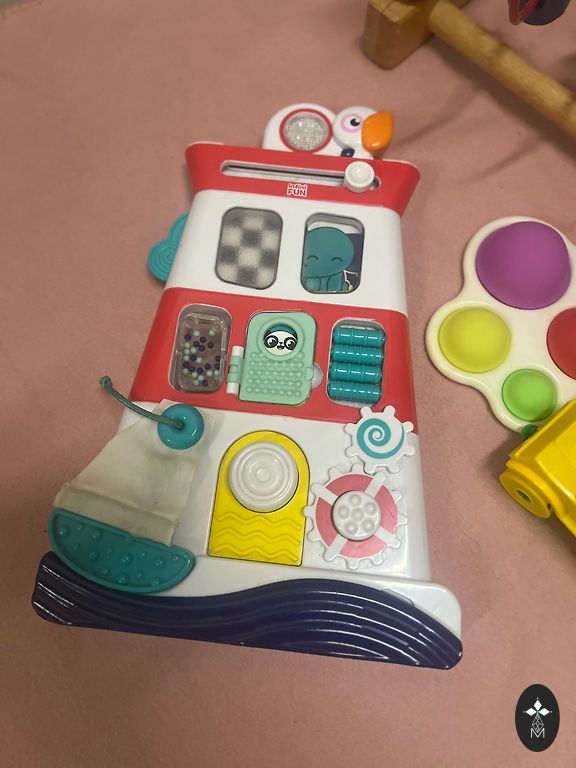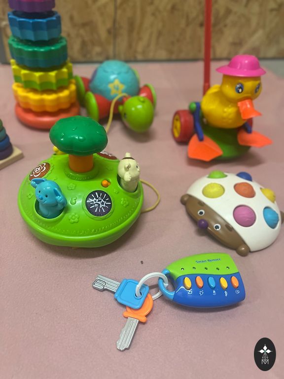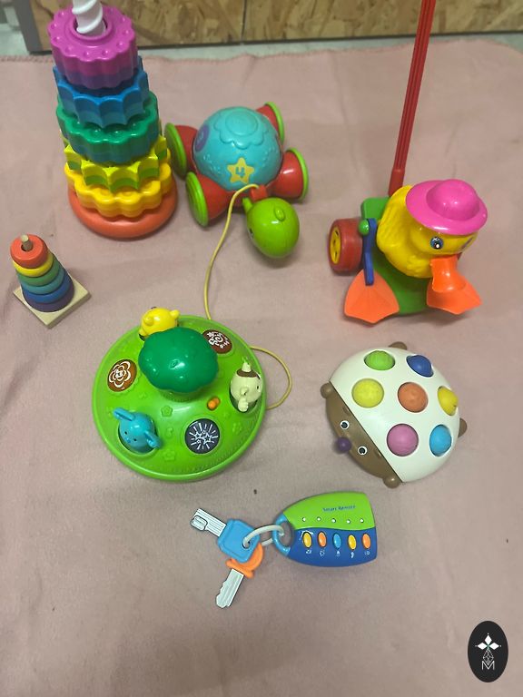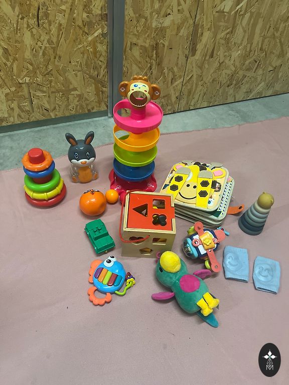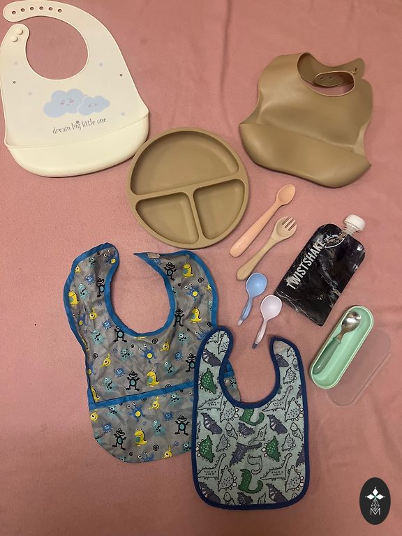 Keletas dalykų kūdikiui, naudinga pradėti papildomą maitinimą. Puodeliai yra nauji ir daugkartinio naudojimo. Nagų dildė labai praverčia pirmaisiais gyvenimo metais - ideali būklė. Kojinės - vilna.