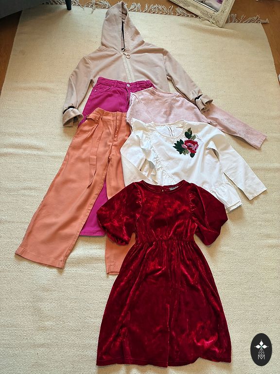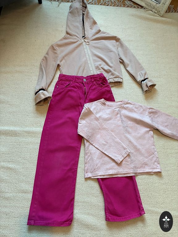 Kaks Pepco komplekti tüdrukule suurusele 134+ Nike tossud suurus 35. Tumeroosadel on veidi plekke, võib-olla saab välja pesta, piltidel on näha, et see pole väga märgatav.
