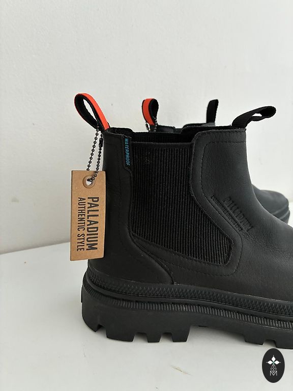 Palladium Pallatrooper ādas pavasara / rudens Čelsijas stila unisex zābaki. Jauni, bez defektiem. Kvalitatīvi materiāli, modelis, kurš nav vairs pieejams. 42. izmērs, zoles garums - 27cm. Saņemšana Rīgas centrā vai jebkurā pakomātā.