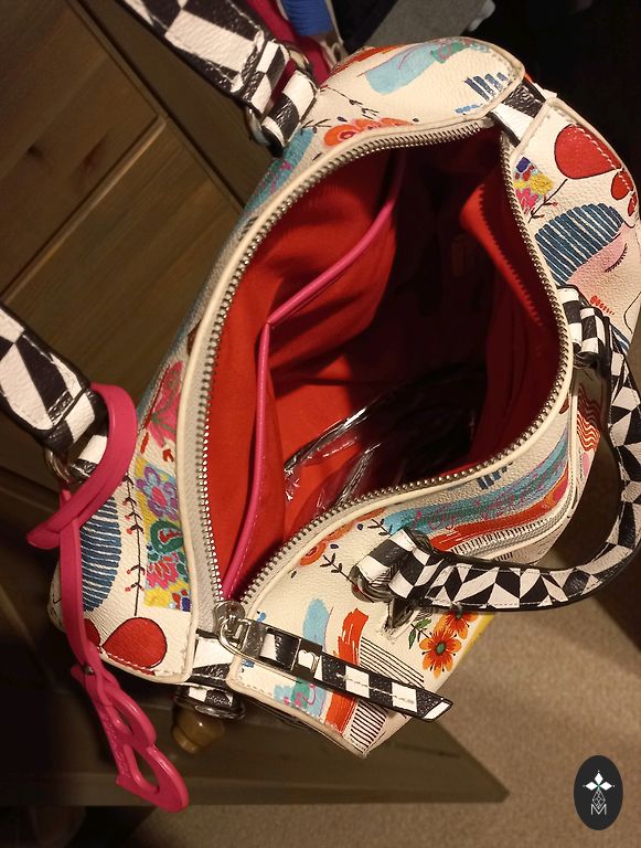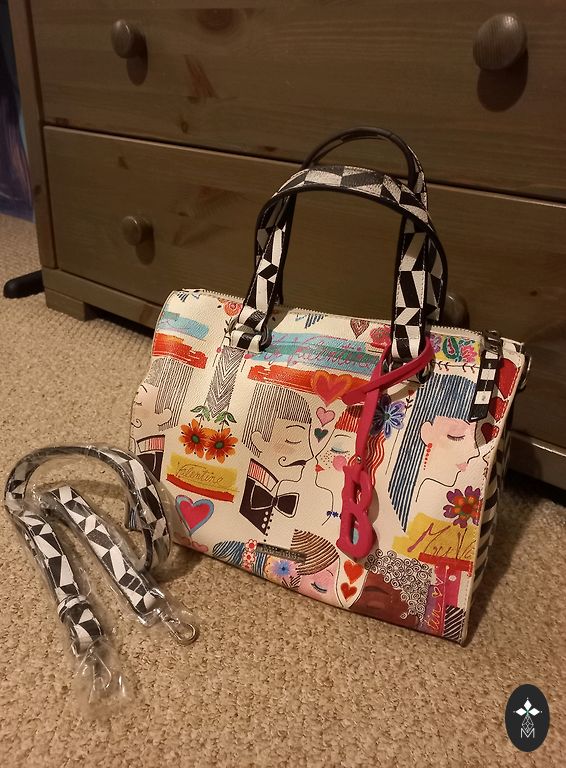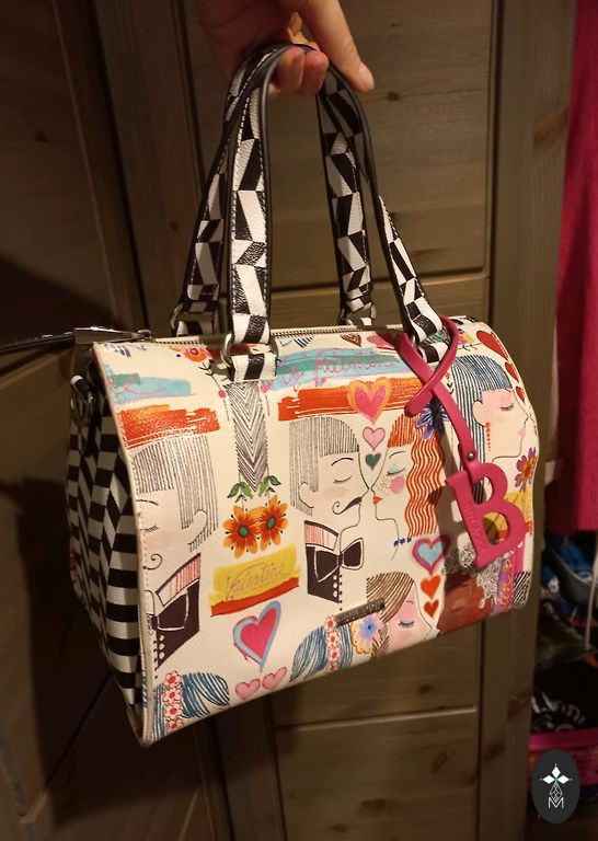 Tīra, svaiga pavasarīga, gaiša soma ar melnu maliņu; iekšā 1 kabatiņa+ 1 ārpusē , zeltaina furnitūra, magnētiskā poga