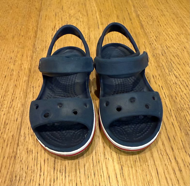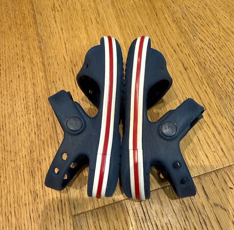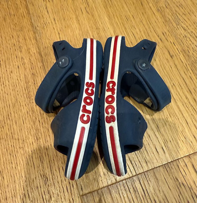 Crocs sussid tagumise kontsarihmaga. Mugavad, kerged, stiilsed. Puudus - piltidel on näha, et õmblused on tumedamad, kuna neid ei saa puhtaks pesta. EU 24-25 ehk C8