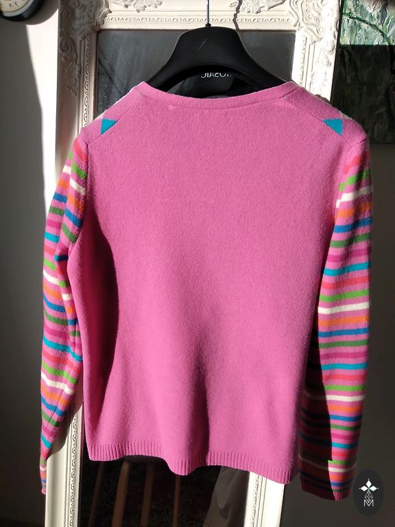 Uz 9-10gg 134-140cm, bet derēs arī uz 11-neliels oversize piegriezums, garums 48cm, platums 44cm.