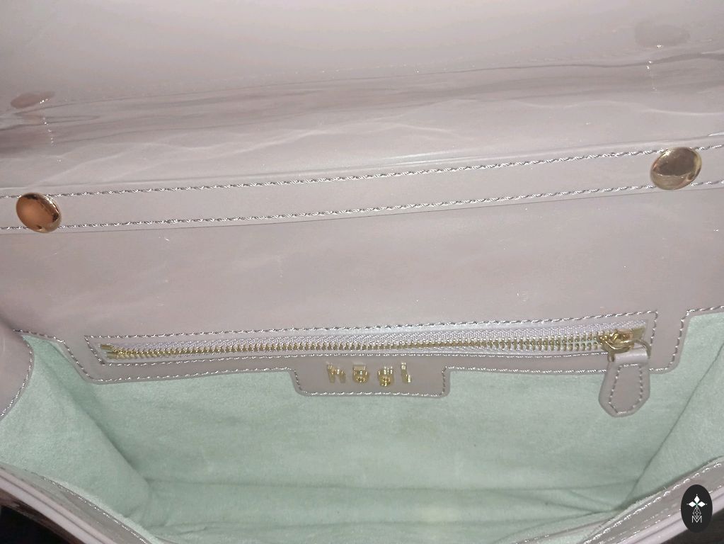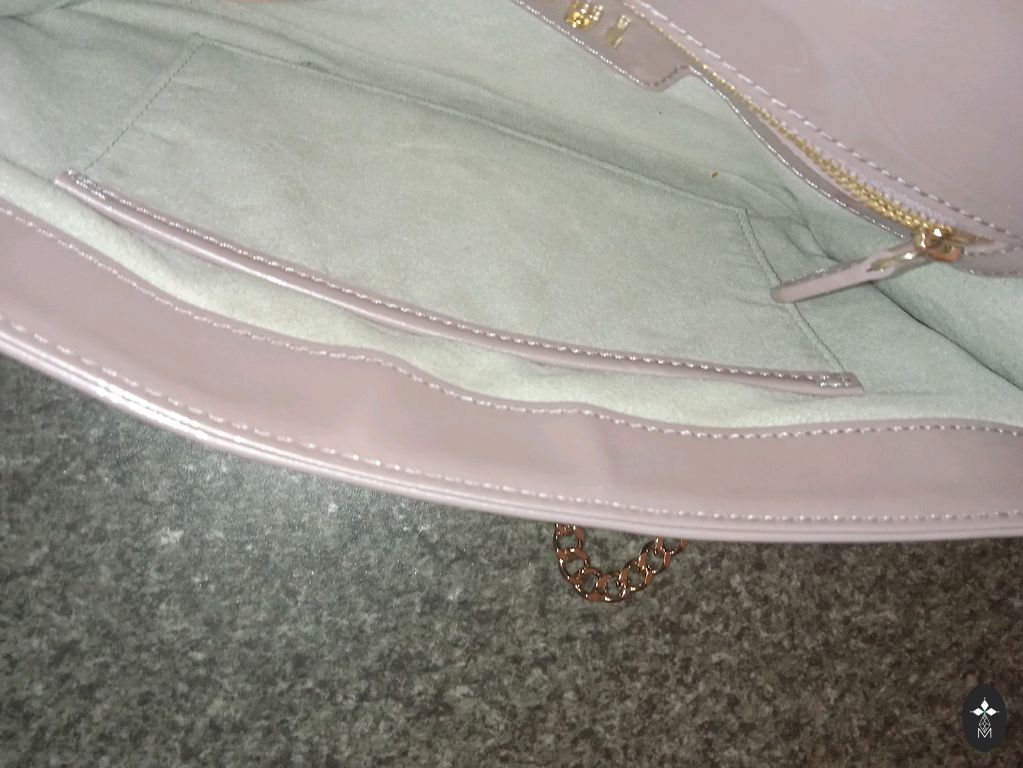 Patogi, mažytė rankinė, kurioje galima įdėti tik būtiniausius daiktus. Pridedama grandinėlė. Visai nedidelis įbrėžimas. (Žiūrėkite nuotraukoje)