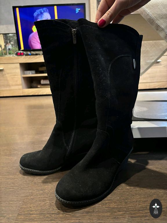 Высокие ботинки из искусственной кожи, размер 39. Надеты один раз - мне они немного узковаты. Без дефектов, в отличном состоянии.