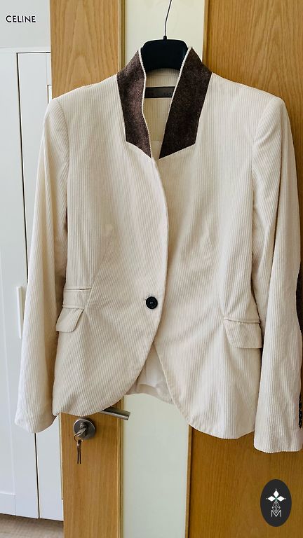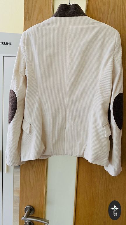 A slightly oversized, trendy jacket made from firm knit fabric. Unlined. Comfortable and pleasant even in summer. The shade is off-white/light beige. Suitable for L/XL.