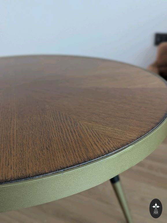 Tieši šo modeli ražoja 2018 gadā, jo galda virsma ir klasiskajā ģeometriskajā “parketa / siļķes kaula” tipa rakstā (herringbone stilizācija). Tieši šis modelis vairs nav pārdošanā un netiek ražots. Lieliska iespēja iegūt savā īpašumā nelielu vēstures daļu no 60ajiem.
