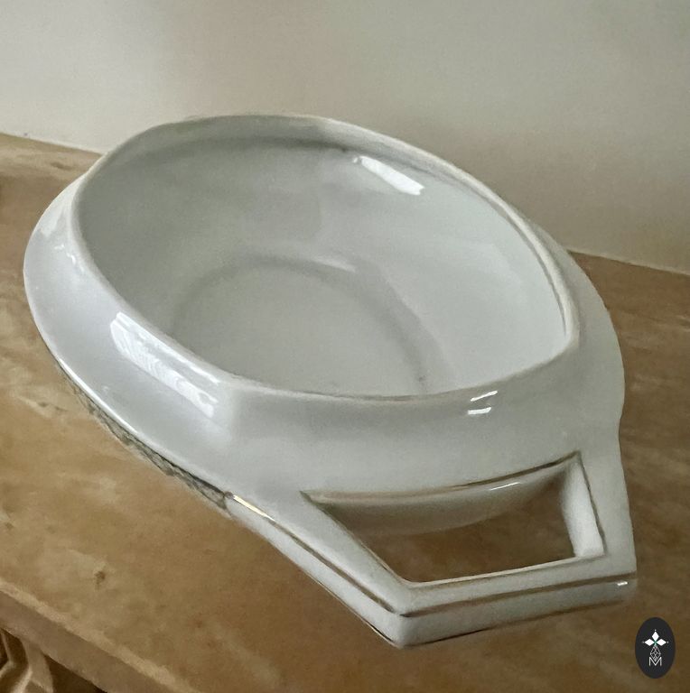 Fajansa sāls trauciņš. Ir sena plaisiņa (pēdējais foto), lietošanai netraucē! H~ 10 cm. Sūtu, ja apmaksā pircējs, saiņoju atbildīgi!