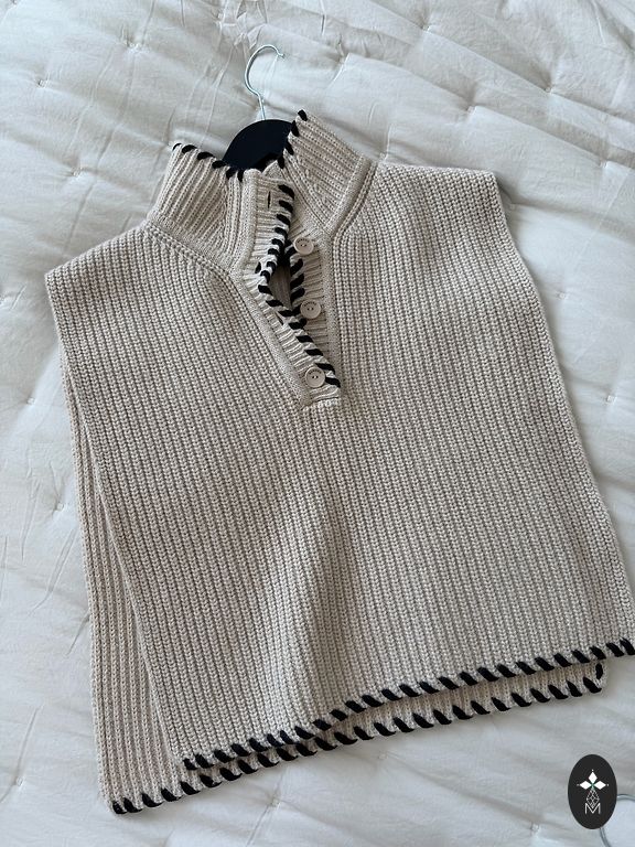 Vienas iš žinomiausių prekės ženklo modelių - Gaspard megztinis. Galima dėvėti kaip megztinį su sagomis nugaroje arba kaip švarkelį su sagomis priekyje. Plonas, bet šiltas, labai patogus. Dydis S, tačiau drąsiai gali dėvėti ir M dydžio merginos, nes tai oversize modelis. Gražus navy blue atspalvis. Be defektų.