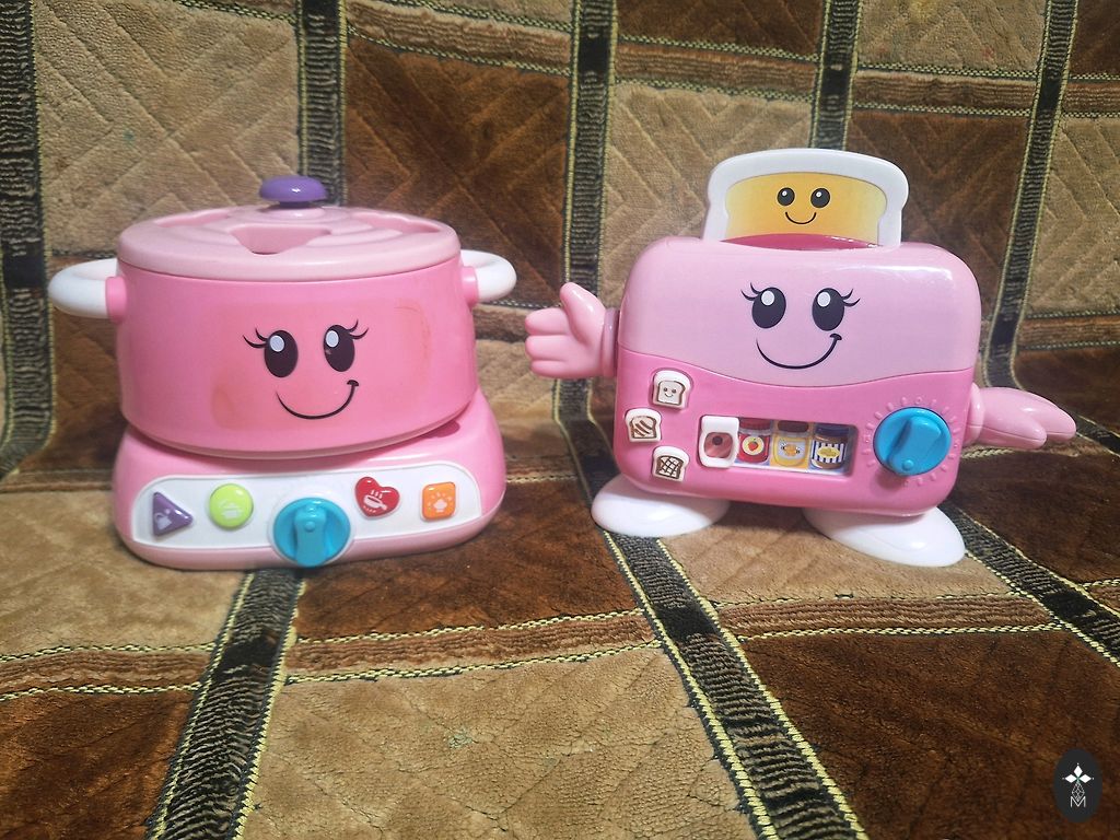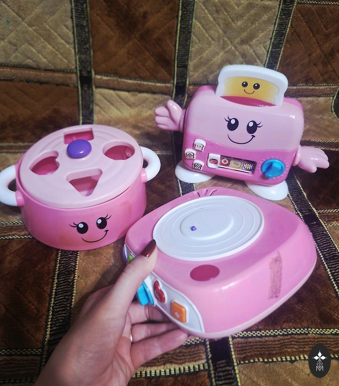 Ezītim trūkst 1 gabals, koka puzlei trūkst 1 gab, un koka piramīdām arī trūkst 2 detaļas. Pārējais viss ir ļoti labā stāvoklī. Noteikti vēl kādam bērniņam noderēs 🙃