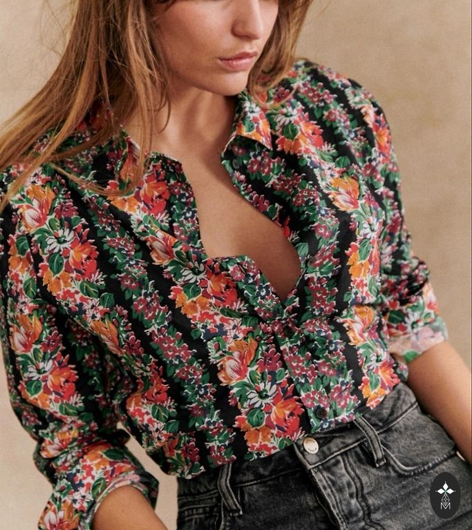 Яркая блузка из серебристой ткани, которую можно использовать как летнюю куртку поверх топа или платья на бретельках. Она имеет прямой крой, мягкая, легкая и удобная, легко сочетается с одеждой любого цвета.