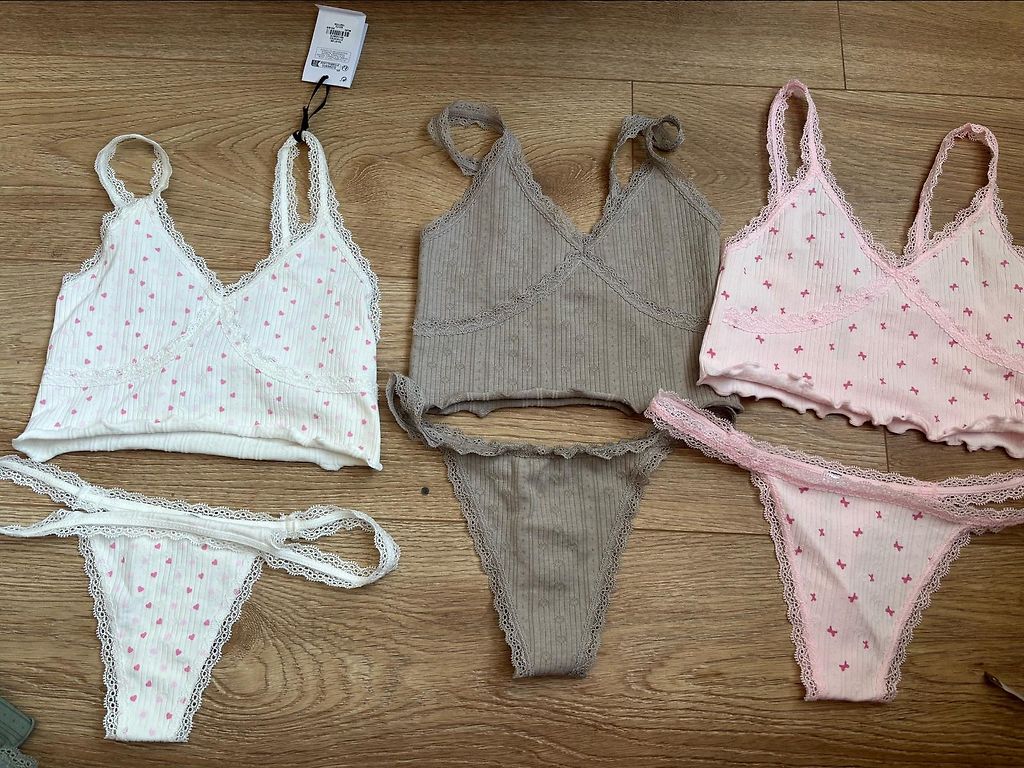 Xs Izmeri. 3 komplekti. Elastigs audums. Topins nestiepjot 26x2 cm, biksites jostas vieta 24x2 cm.