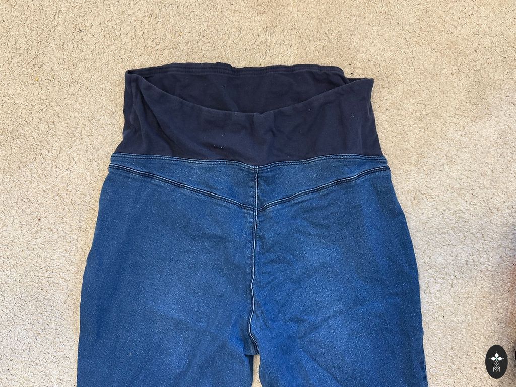 Джинсы для беременных из эластичного денима с эффектом стирки. Встроенная поясница над животом из мягкого, эластичного джерси, два имитированных косых кармана и два нашитых задних кармана.