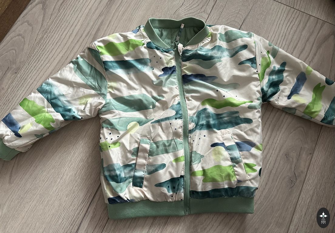 Kūno dalyje ir kapišone yra fliso izoliacija, idealiai tinka pavasariui. Rankovėse lygi pamušalas, kad būtų patogu apsirengti. Nenaudotas prailginimas - galima prailginti apie ~4 cm pagal poreikį. Priekyje gilios kišenės. Striukės ilgis 50 cm, plotis 41 cm, rankovė 44 cm. Šviesios audinio dalis priekyje vietomis tamsesnė, jei atidžiai stebima prieš šviesą - sunku užfiksuoti nuotraukoje. Nėra ryškiai matoma, bet nėra ir visiškai švari, kaip ką tik iš parduotuvės. Kitaip striukė puiki, nesukelia prakaitavimo, kaip guminėse lietaus striukėse, tuo pačiu metu šildo, nepraleidžia vandens ir vėjo.