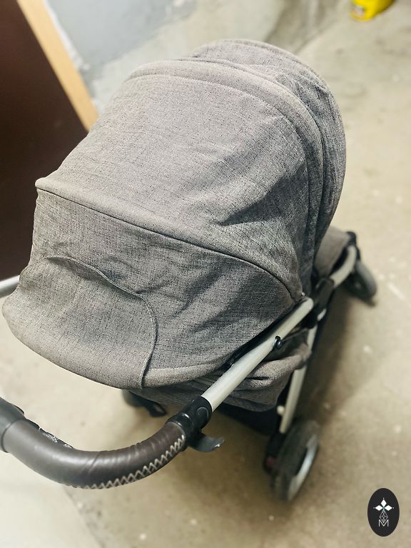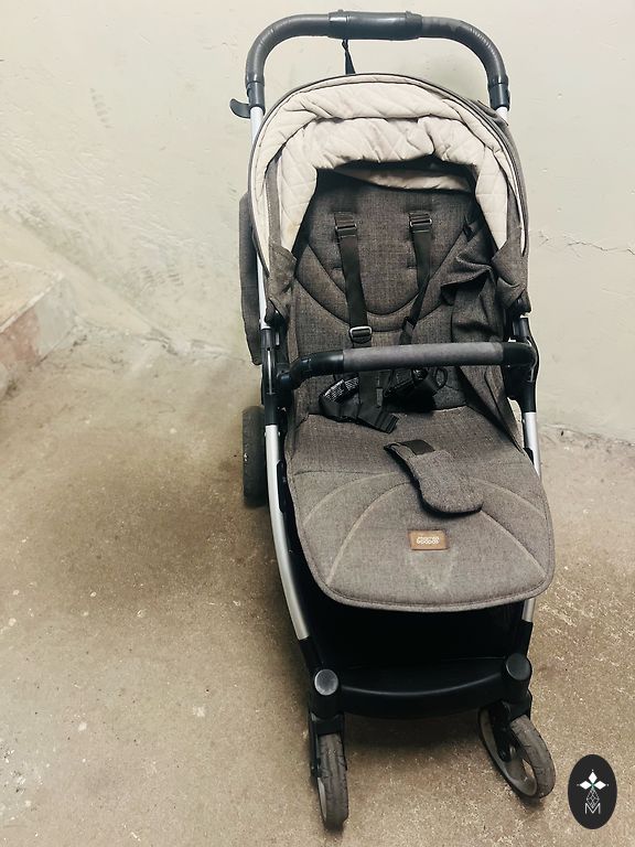 Lietoti pastaigu rati. Viss darbojas - bremzes, nolaišan guļus pozīcijā, drošības siksnas.