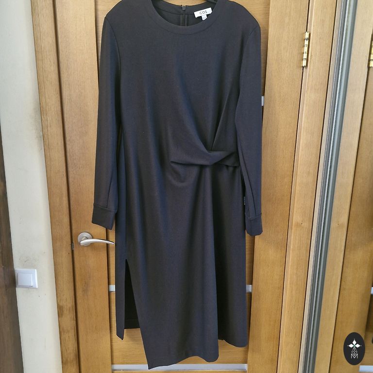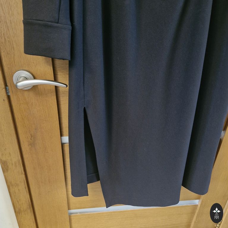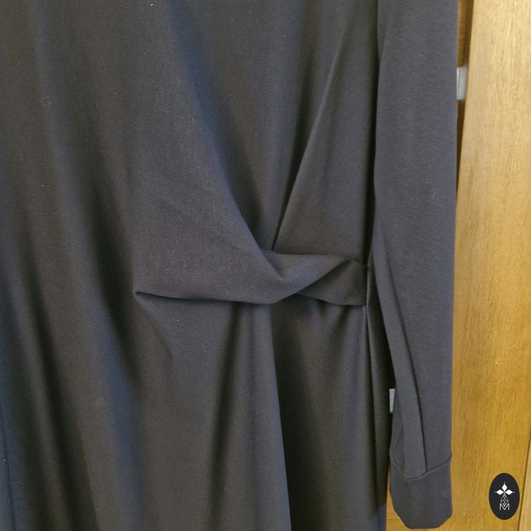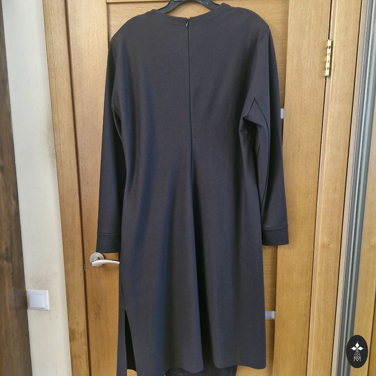 Graži ir labai patogi itališka Stella Milani aksominio medvilnės suknelė su daugiapakopiu raukiniu. Glostantis siluetas, raukiniai nesuteikia apimties. Nėra standi medžiaga. Aktualus tamsios šokolado atspalvis. Gerai tiks nuo XXL iki 4XL dydžio, žiūrėkite matavimus: pažastys 56 cm, klubai 66 cm, ilgis 112/120 cm. Paslėptos kišenės šoninėse siūlėse. Puikiai tinka neformaliam biurui, išėjimui, taip pat kasdienai. Absoliutus komfortas.