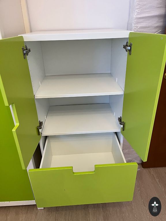 Perfektā stāvokli, lietots ļoti saudzīgi. Komplektā: galds, 3 trauciņi un miskaste (nelietota), āķīši dvielīšiem vai miskastei, Ikea matracītis un Lodger pārvalciņš mint krāsā. Pašizvešana no Rīgas, Čiekurkalna.