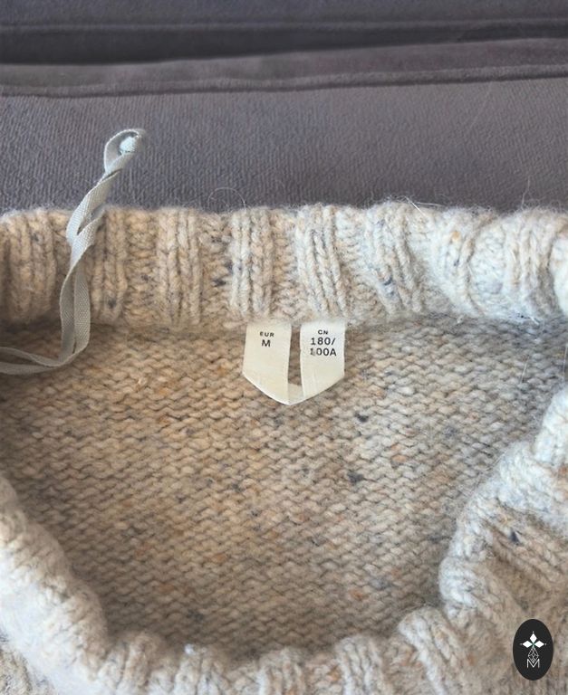 Sweater made of 100% merino wool, unworn. Conditional "defect" - brand label inside the sweater has come undone (see photo). Length 52cm, shoulder width 40cm, width under the armpits 48cm.