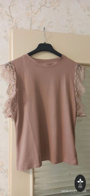 Viršus su elastingumu, poliesteris, pojūčiais nėra sintetinis audinys, krūtinės plotis 55cmx2, juosmens plotis 56cmx2, ilgis 65cm.