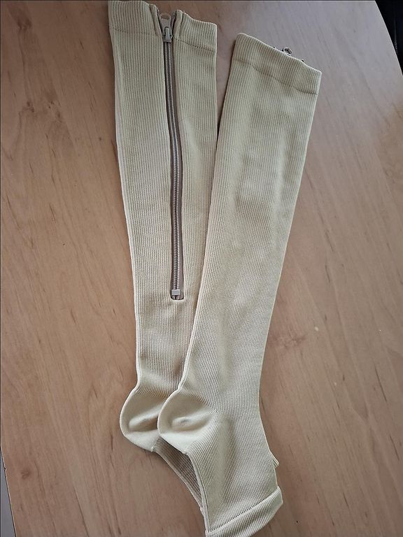 37-41 pėdos dydis. Galimos smėlio ir juodos spalvos. Kelionės ir venų ligų prevencijos kompresinės puskojinės. Kompresinės kojinės skirtos kasdieniam naudojimui žmonėms, turintiems aktyvų ir sveiką gyvenimo būdą: sportui, darbui, kelionėse, nėščiosioms labai gerai padeda iki ir po gimdymo nuo kojų patinimo. Kaina nurodyta už 1 porą.