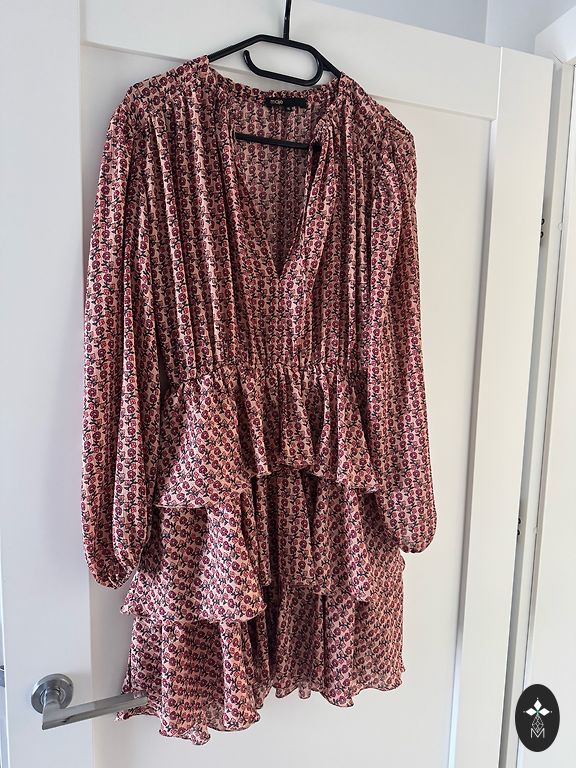 Very beautiful, airy, tunic/dress made of pleasant material, size S/M! Elastic at the waist, as well as elastic at the cuffs, allowing you to adjust the sleeves to your desired length. Very wide, flowing, and full skirt, zipper at the back. Length from shoulder to bottom is 83cm. The sleeves are not tight, the underarm area is widened. Shipping is covered by the buyer.
