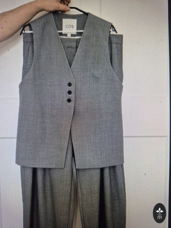 Stilingas ir patogios kelnės kostiumas.