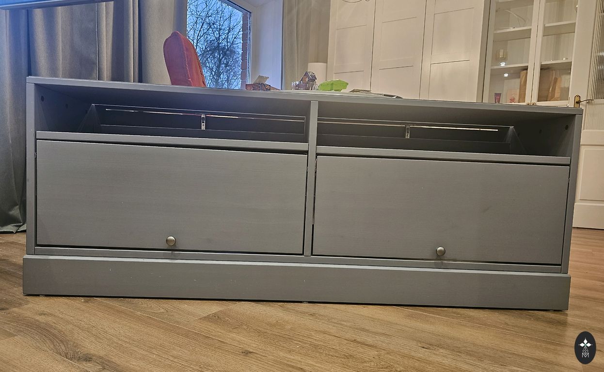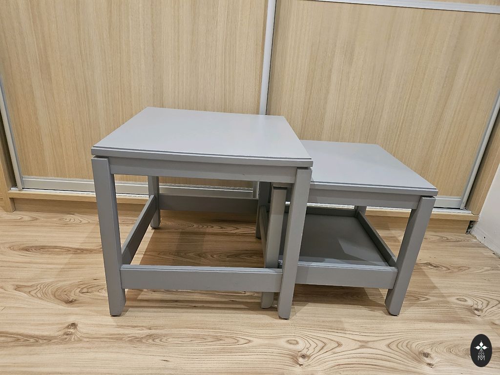 Два кофейных столика Havsta, которые можно сложить один в другой. Недостатки - у большего столика поверхность немного повреждена. См. на фотографии.