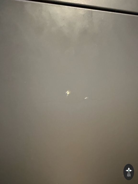Pārvietošanas laikā nedaudz bojāta augšējā plaukta iekšējā daļa (neliels šķembas/plēves pārklājums). No ārpuses nav redzams, lietošanā netraucē, uz funkcionalitāti neietekmē. 3. fotoattēlā, kur norādīta bulta. Foto varu nosūtīt privātajā ziņā, šeit vietas nepietika, lai tos parādītu.