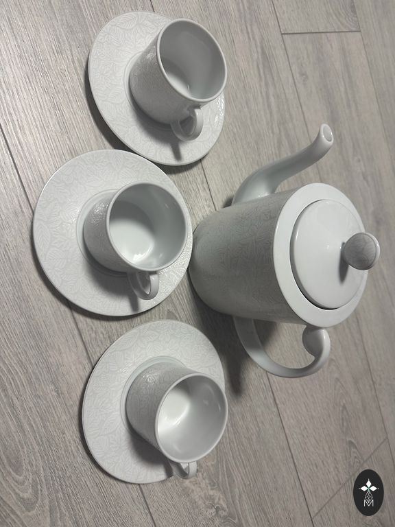 Tassid alustassidega Bohemia kuldse äärega. 10 tassi, 10 alustassi. Tassid sobivad puljongile või muule. Tassi läbimõõt 12 cm, taldriku 16,5 cm. Möödunud sajand umbes 70-80 g.
