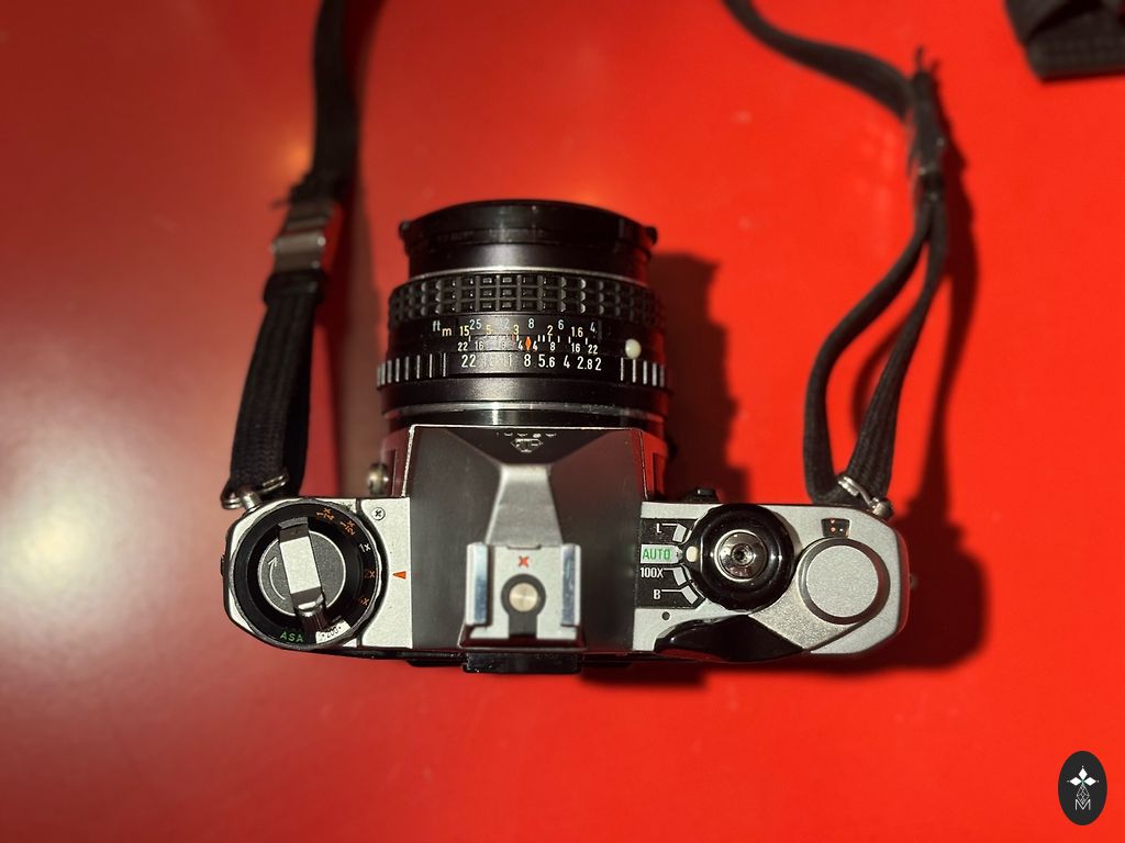 Lens: The famous Zuiko F.C. 7.5cm f/2.8 (very bright and sharp for its time).