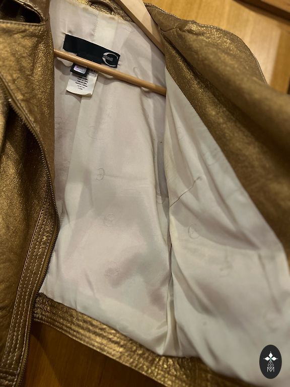 Víriešu, bet nèsája sieviete. Ļoti skaista, dabīgà áda ar zeltítàm ķèdèm. Ir kabatas gan jakas priekşpusè gan iekśpusè. Cena śai jakai tikai ceļàs, ká to var manít interneta vietnès.