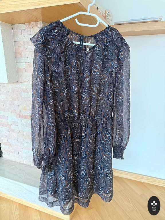 Nesulaukė savo tikrojo pasirodymo. Labai graži ir unikali suknelė, lengvo audinio, su pamušalu, midi ilgio, sagstoma ir surišama. Siuntimas įtrauktas į kainą.