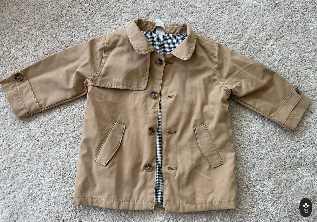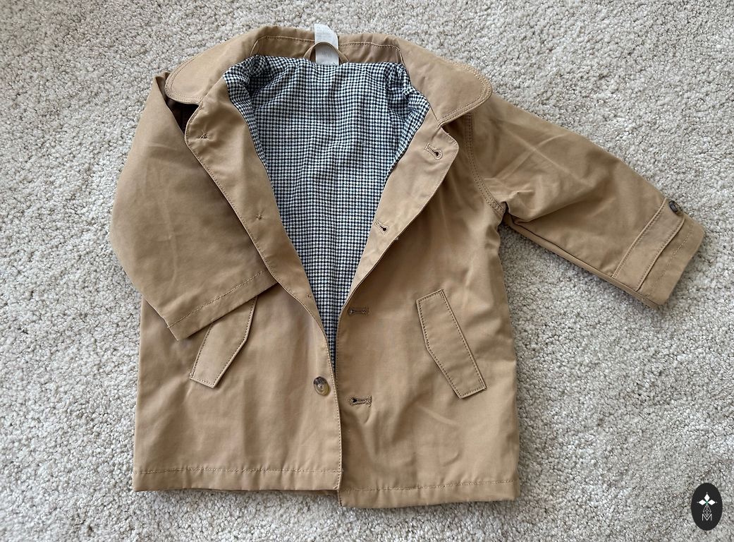 Dvipusis švarkas iš 50% ekologiškos medvilnės ir 50% poliesterio. 80 dydis.