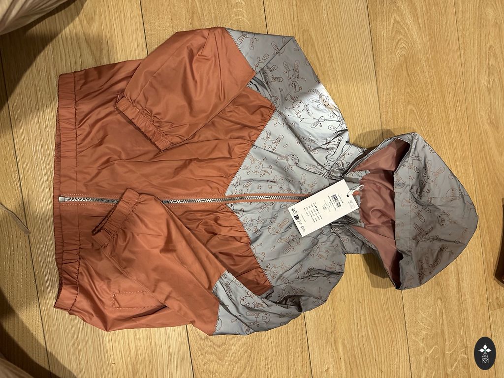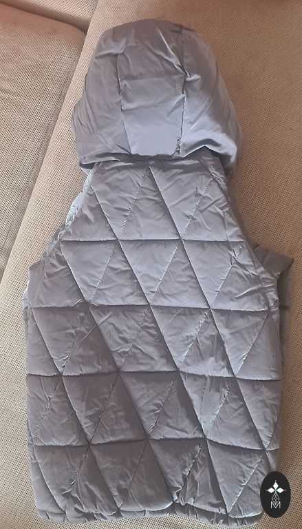 Новый, с отражателем, капюшон можно снять. Отличный вариант для детского сада, цвет серо-черный. Размер указан 128. Длина по спине 52, ширина 40. Для худенькой девочки не подойдет, будет широковат (поэтому и продаем).