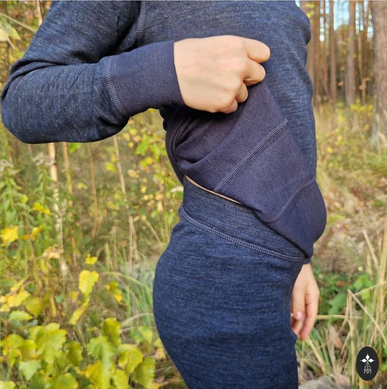 Lahe komplekt - 57% meriinot, 43% polüesterit. Mugav väljas sportimiseks. Meeldiv, ei ole kare, polüestrist pehme sisekihi tõttu.
