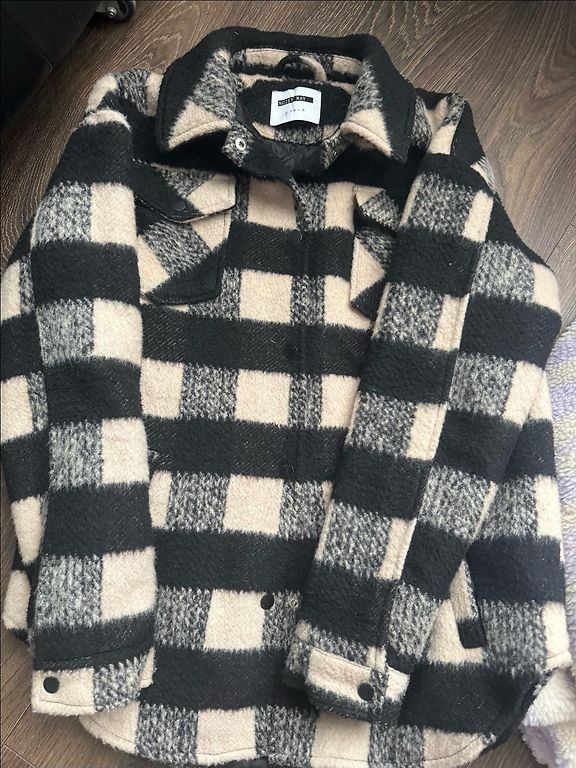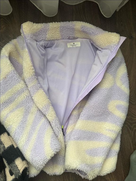 Gera būklė. Vienintelis dalykas - šiek tiek nusidėvėjusi spalva ant sagų ir užtrauktuko užsegimo (3 ir 4 nuotrauka). Ant rankovės nepastebimoje vietoje yra nedideli gelsvi dėmeliai (5 nuotrauka). Pristatymas įskaičiuotas į kainą.
