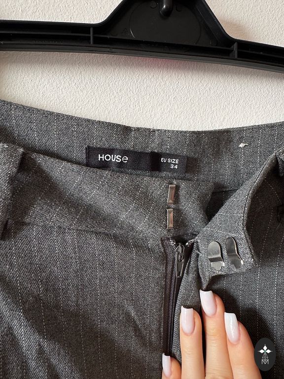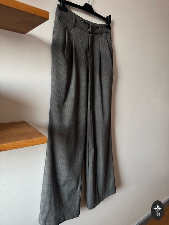 Zaļas auduma bikses. Auduma satāvs poliesters,pēs struktūras kā buklē. Izmērs 36
