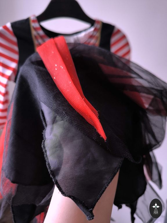Kleita ar caurspīdīgu augšējo kārtu un oderi, tas rada gaisīgumu, bet nespīd cauri. Mugurpusē rāvējslēdzējs.