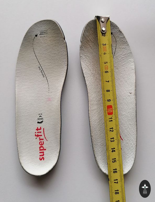 (mērot izņemtā veidā – ~17,5 cm, daļa ielokās) Apavi ir ļoti viegli un mīksti, ar mīkstu papēdi.
