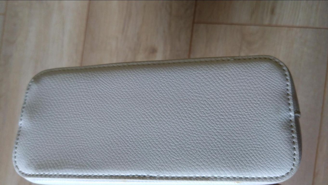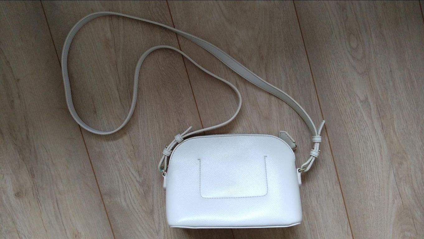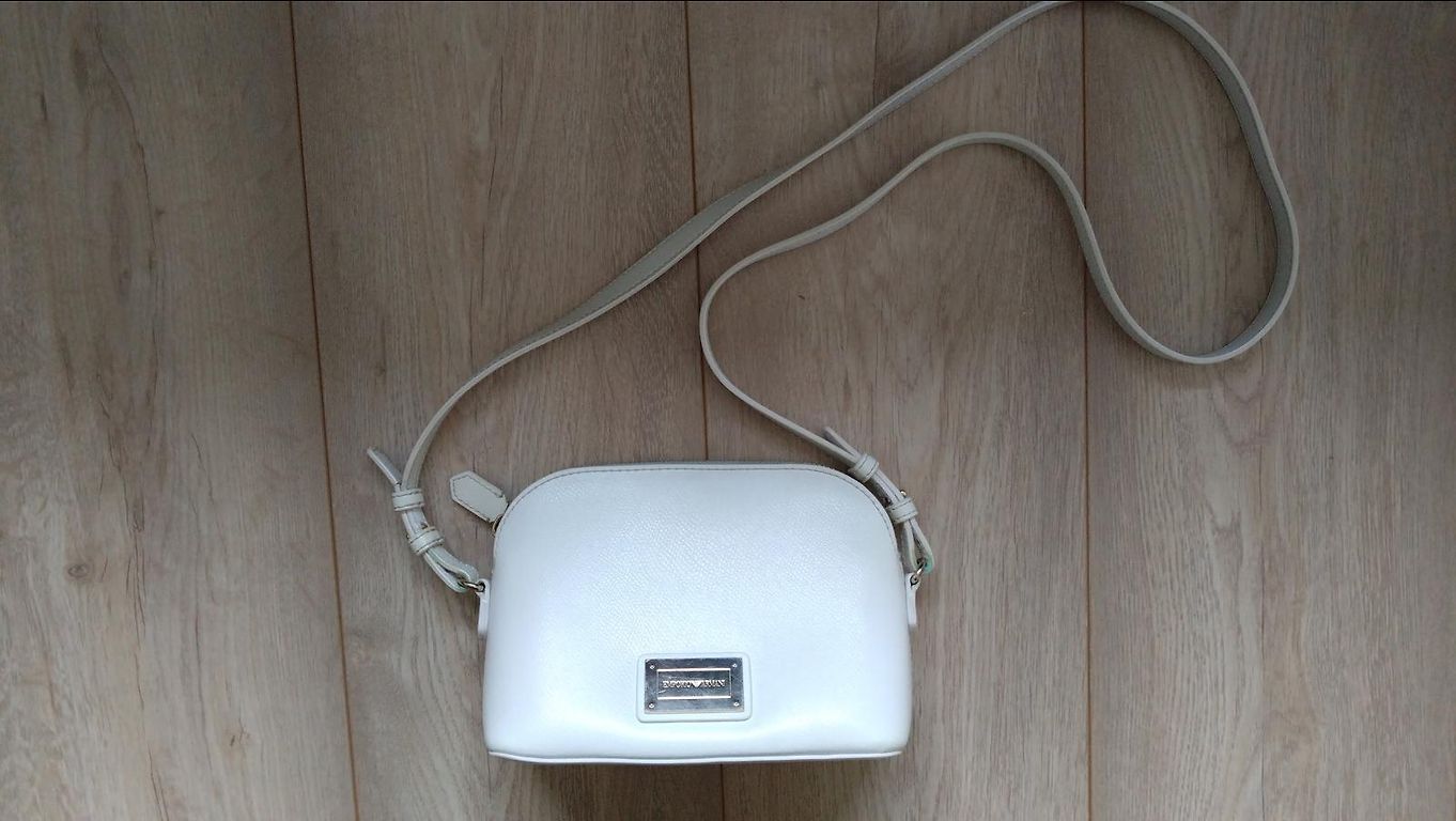 Suurepärane valik väljas käimiseks - teatrisse, kontserdile või mõnele muule üritusele. Kuigi see on väikeste mõõtmetega, mahutab see kõik vajaliku - telefoni, kaarditasku, esmatarbekaubad kosmeetika värskendamiseks, autovõtmed. Kotil on kaks suuremat sektsiooni ja väike tasku pisiasjade jaoks. Metallist kinnitusega sulgur. Pikk rihm ketiga ja valge nahast punutis. Ilma defektideta.