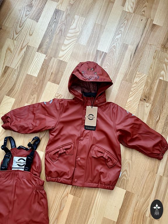 Tinka Lietuvos pavasariui ir rudeniui. Šiltintas, kelnėms šilta viršutinė dalis. Yra šiek tiek nusidėvėjimų ant kelnių ties keliais, prarasta viena originali gumytė apačioje.