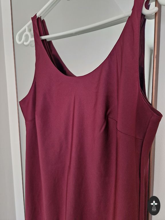 Oranža kleita ar jostu "Ivo Nikkolo". V-veida izgriezums krūšu daļā, kleitas priekšpusē ir arī neliels šķēlums. 100% kokvilna.