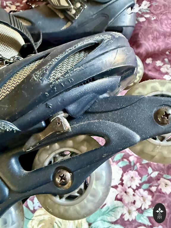 Yra defektas ant kelnių - nusitrynimas (nėra skylės)