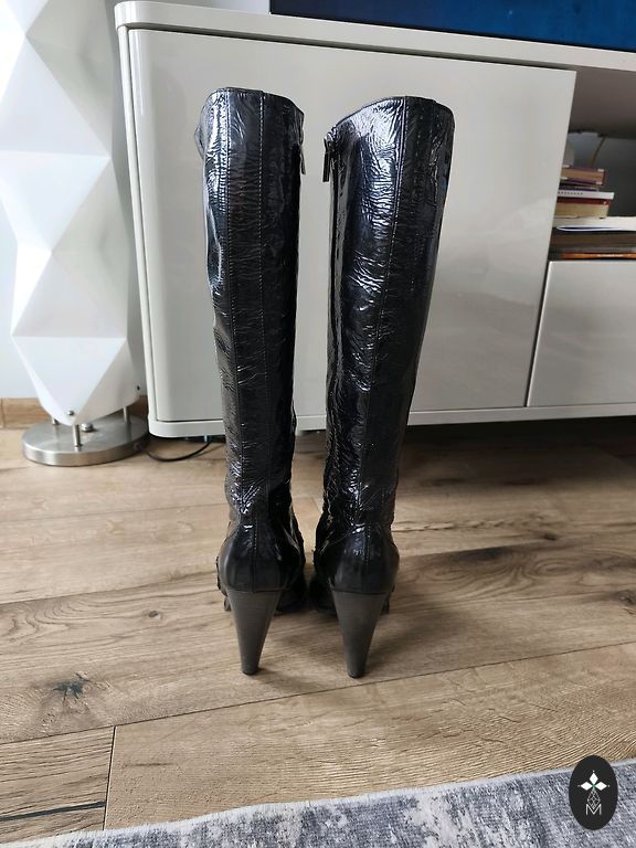 Stulma garums no pašas apakša 43 cm.Iekšpusē pavisam neliels siltinājums .Ļoti ērti ikdienai.