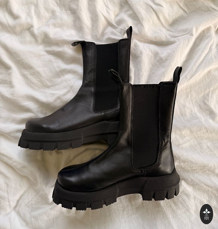 Stilīgi melni Air Jordan 1 sporta apavi. Valkāti tikai pāris reizes, ļoti labā stāvoklī. Oriģinālā kaste iekļauta.