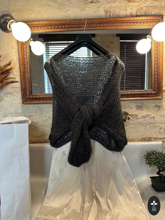 Kleidi kangas on jäik - nagu elastaan, hoiab suurepäraselt vormi ja rõhutab figuuri. Ülaosas looduslikud suled, ümber terve ülaosa, ka taga.