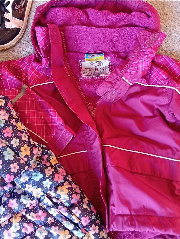 Smuks komplekts meitenitei uz 80-86 izm.Visas drēbes labi firmu,pirktas jaunas un lietojusi viena meitenīte.Nike rozā kostimins(orģināls),ir neliels traipiņš uz dupsisa ,bet noteikti ar labu līdzekli var izmazgāt!!Loti skaistas kleitinas ar kaķīšiem (suta uz pasūtījuma )un kleitina ar jokšīras terjeriem,ka jauna.Newbie un H@M legingi.Jauna mickey vestīte!!!.Iespejams kāds traipiņš,bet taa viss laba kartiba.Cena par visu 15 eiro