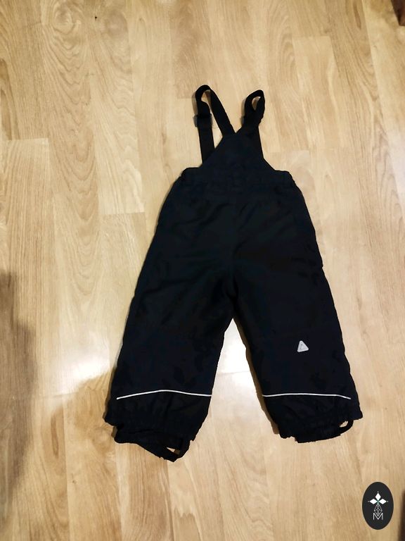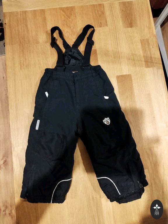 Dvi kelnės su nedideliu skirtumu. Icepeak yra atsparios drėgmei, išbandytos žvejojant, kitos labiau nuo vėjo. Kažką sulaiko, bet minimaliai. Icepeak 164 cm, užrašas nusitrynęs, ilgis 99 cm, vidinė siūlė 73 cm, juosmuo 32 cm, galima ištempti iki 38 cm. Susitraukianti virvelė.