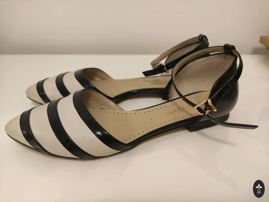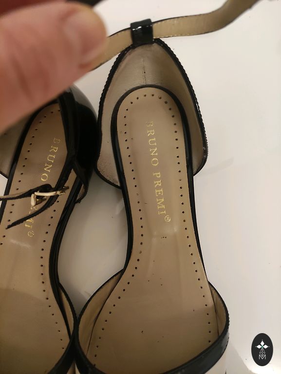 Dirbtinės lakuotos odos batai su antistresiniu padu. Kailio imitacijos elementas suteikia ypatingą akcentą.
