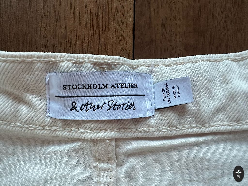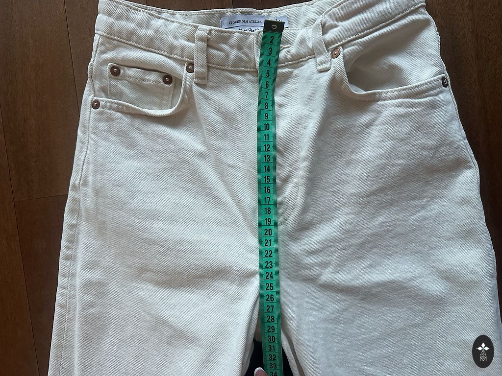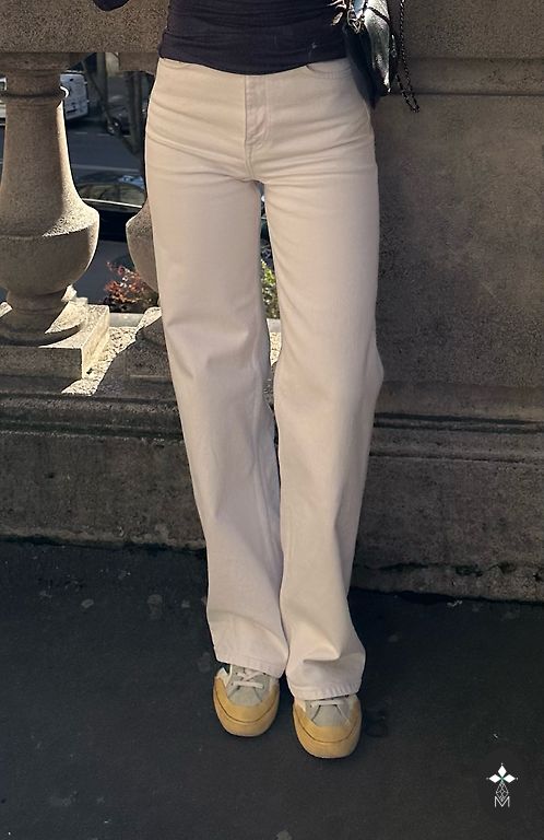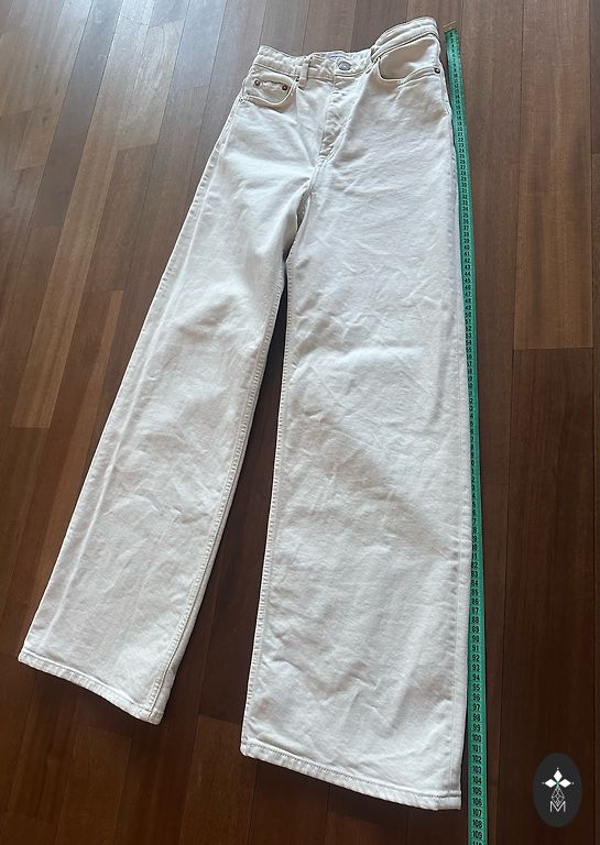 Džinsi krāsā off-white. Audums biezs.